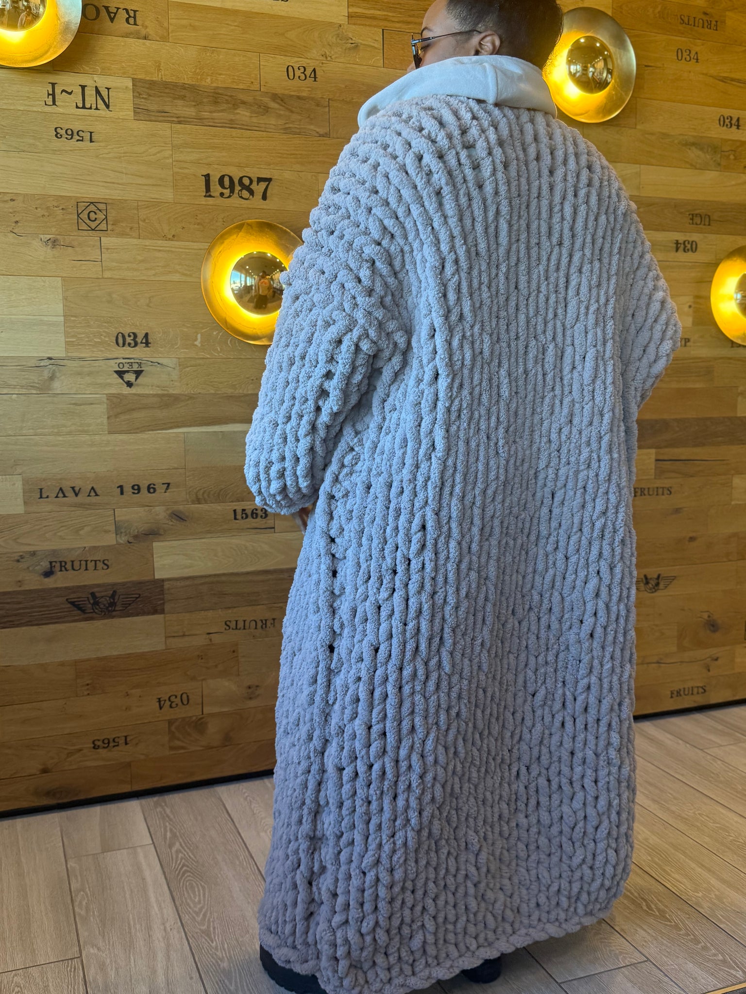 Wrap yourself in the ultimate cozy hug with this Chunky Blanket Duster. Hand-knit from thick, chunky blanket yarn, it’s the perfect jacket substitute for crisp fall days. Who needs a robe when you can snuggle up in this warm, oversized cardigan? It makes a thoughtful gift for anyone who loves comfort and style. Get ready to stay snug and chic all season long!